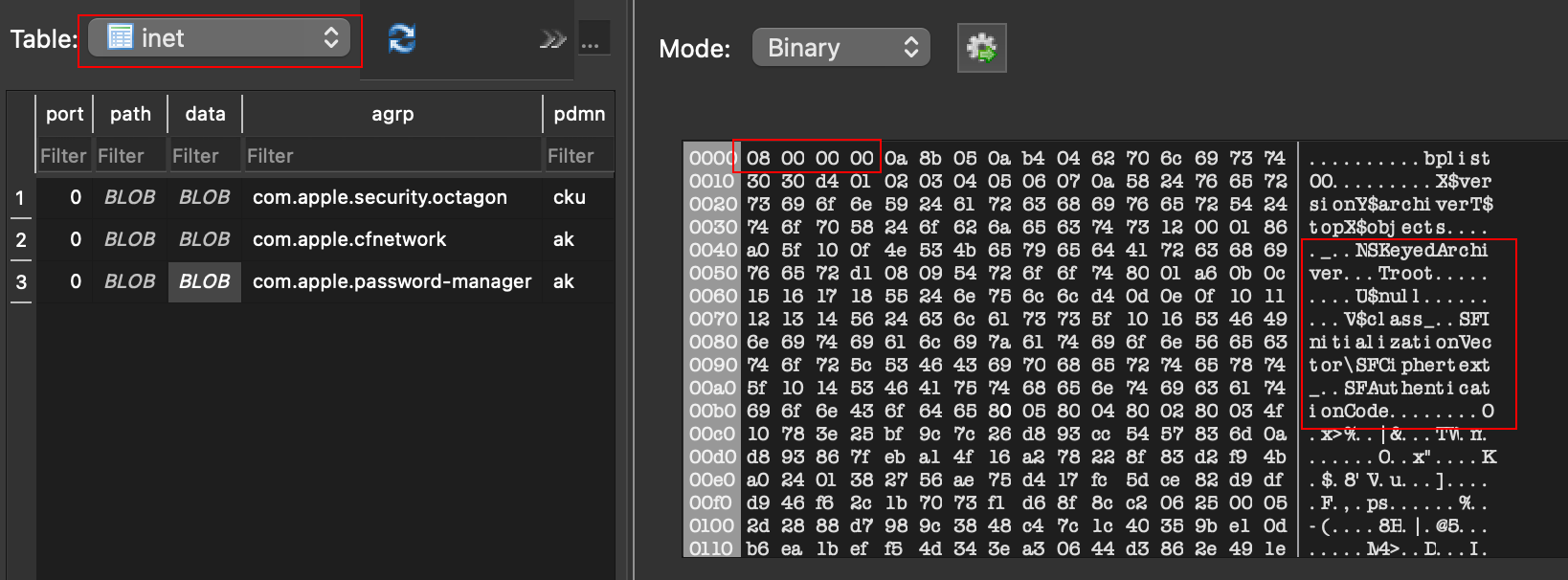 This is this blob that is stored in the Keychain-2.db on the filesystem.